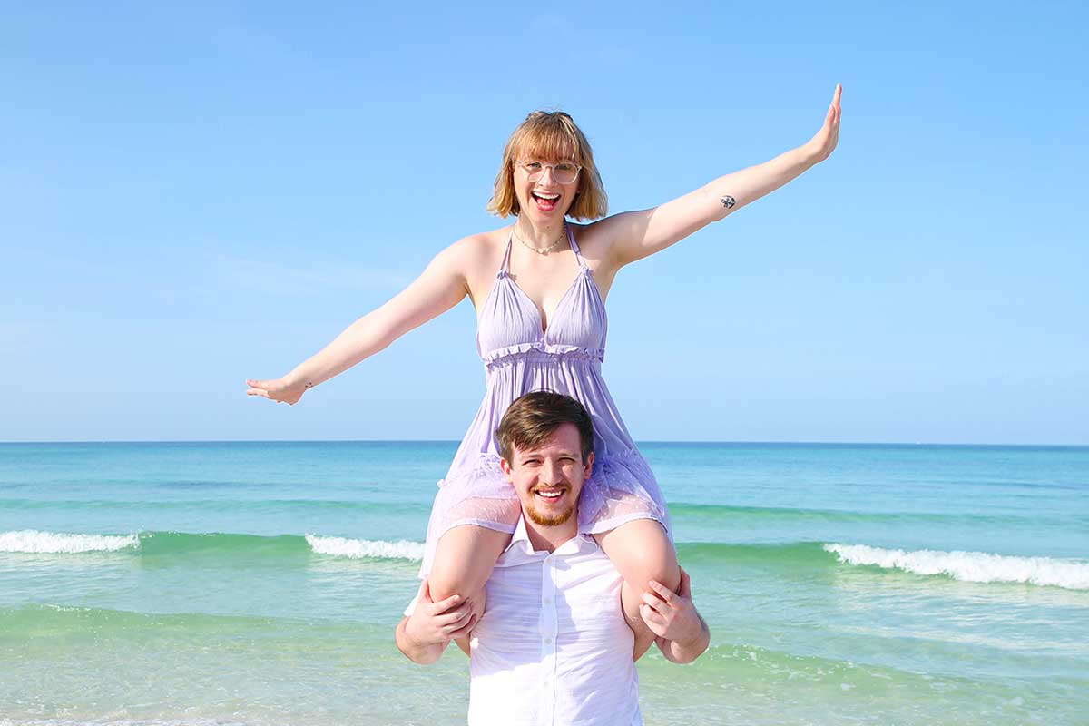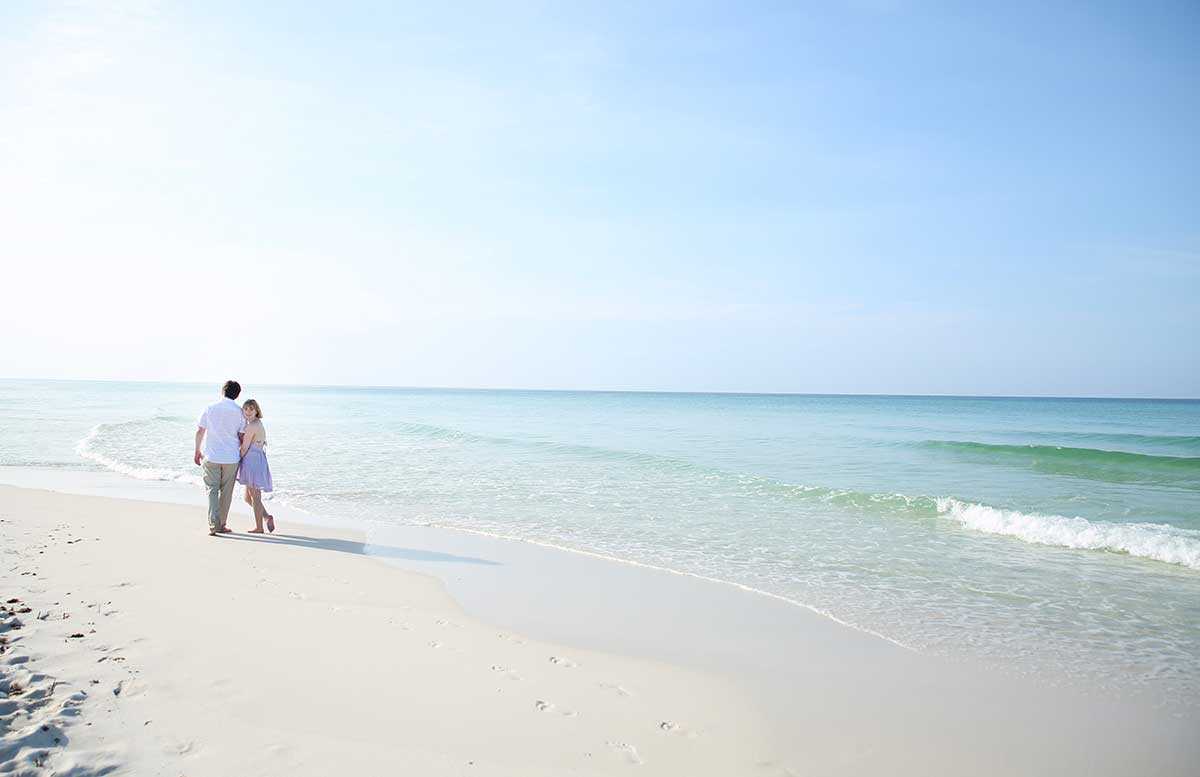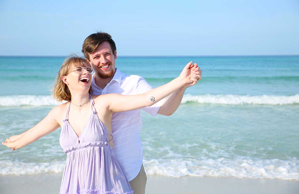 The crisp, clean sugar-white sand, bright blue sky, and varying hues of the water make it easy to understand why it’s called the “Emerald Coast”! During their session, Carter and Kaitlin had fun playing in the sand and water, and we got some fantastic shots!